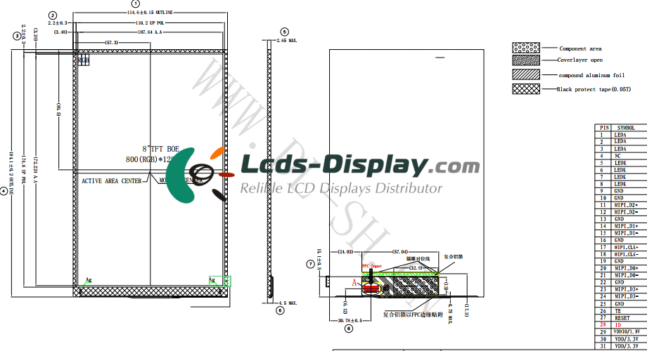 | Beschreibung | a-Si TFT-LCD ,8 inch, 800×1280 |